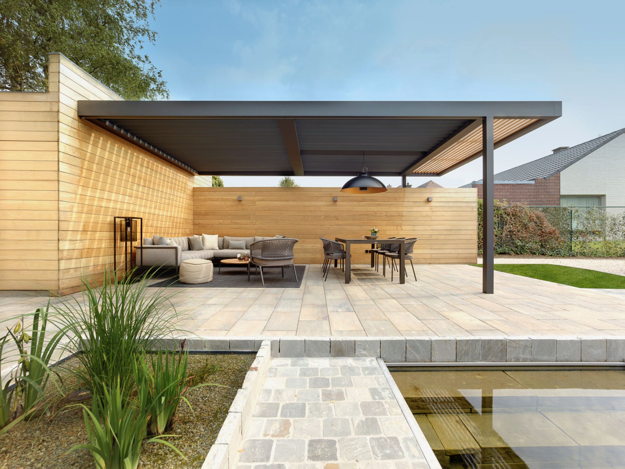 Sélectionnez votre toiture et composez une atmosphère unique. Chaque détail participe à l’équilibre entre lumière, ombre et design. Mélangez les types de toiture et créez un espace extérieur à votre image.