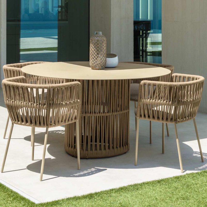 Le tressage de cordes typique de la collection enveloppe l’assise, créant une chaise qui complète bien la collection Cliff. L’élégante complexité du tressage met en valeur la préciosité de tout contexte d’extérieur dans lequel cette chaise prendra place.